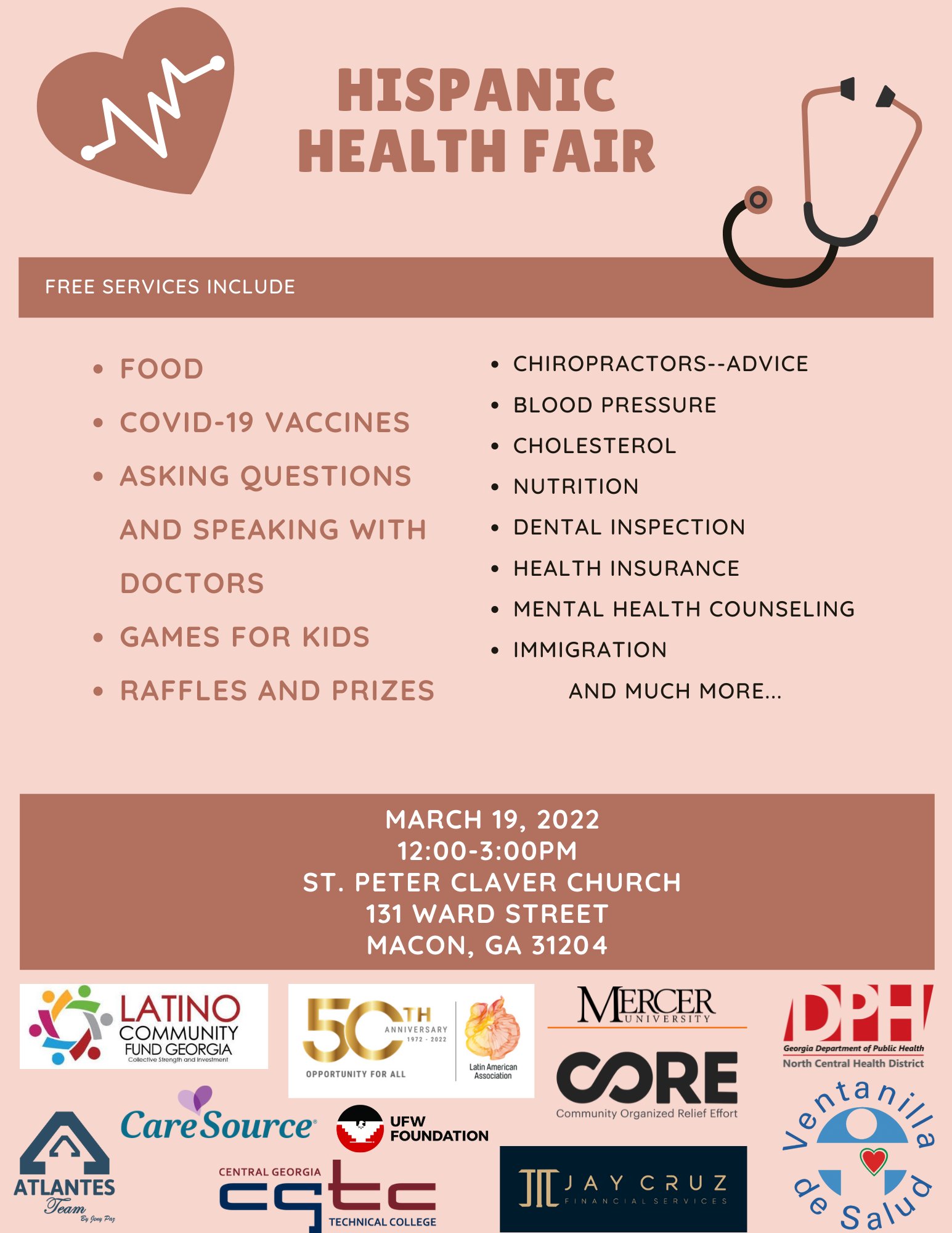Bibb County Schools On Twitter Save The Date The Hispanic Health Fair In Maconbibb Will Be Held On March 19 At St Peter Claver Catholic Church 131 Ward Street Macon From 12 3